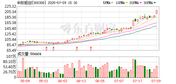 中际旭创7月29日大宗交易平台出现一笔成交,成交量19.00万股,成交金额3988.67万元,大宗交易成交价为209.93元。该笔交易的买方营业部为机构专用,卖方营业部为华泰证券股份有限公司上海长宁区凯旋路证券营业部。